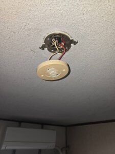 まず、古い照明器具を丁寧に取り外し、シーリング部分の配線を確認。赤と白の電線をそれぞれ接続し直し、絶縁処理をしっかり行います。その後、新しい引掛シーリングを天井に固定し、新しい照明器具を取り付けました。