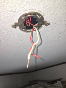 まず、古い照明器具を丁寧に取り外し、シーリング部分の配線を確認。赤と白の電線をそれぞれ接続し直し、絶縁処理をしっかり行います。その後、新しい引掛シーリングを天井に固定し、新しい照明器具を取り付けました。