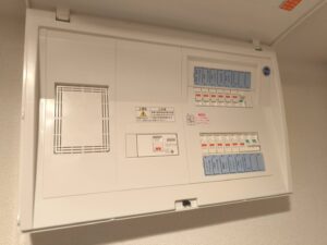 最近の分電盤はデザイン性も高く、壁に馴染むホワイト系のシンプルな外観が主流です。