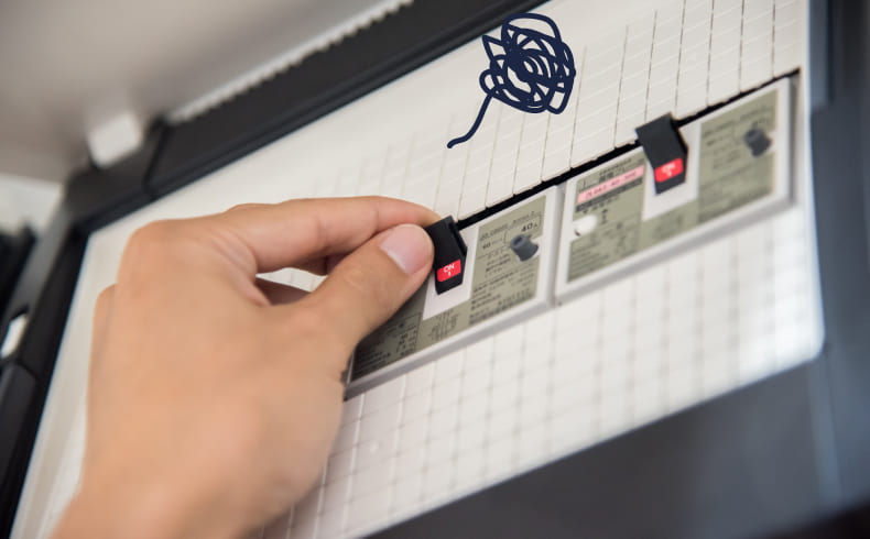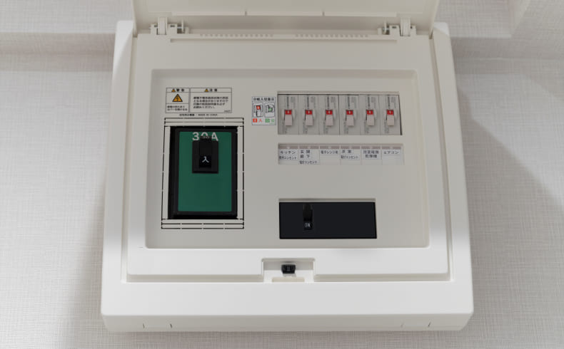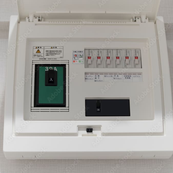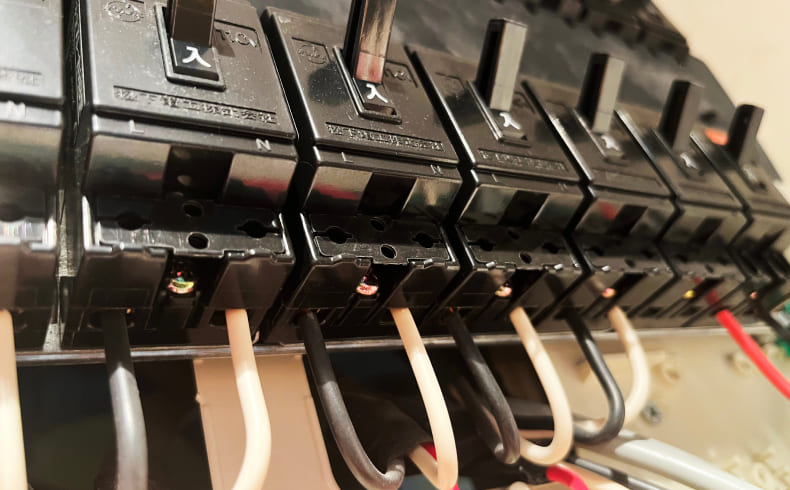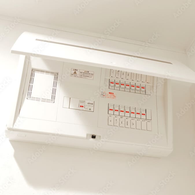 最新タイプの分電盤は、各回路に専用の漏電ブレーカーが搭載されており、異常があった場合も即座に遮断。火災や感電事故のリスクを軽減します。