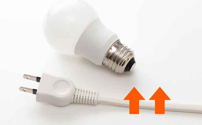 LED照明は従来の蛍光灯や白熱灯に比べて消費電力が少なく、電気代を約半分以下に抑えられることもあります。また、寿命が長く、一般的には約10年以上交換不要。熱もこもりにくいため、安全性にも優れています。